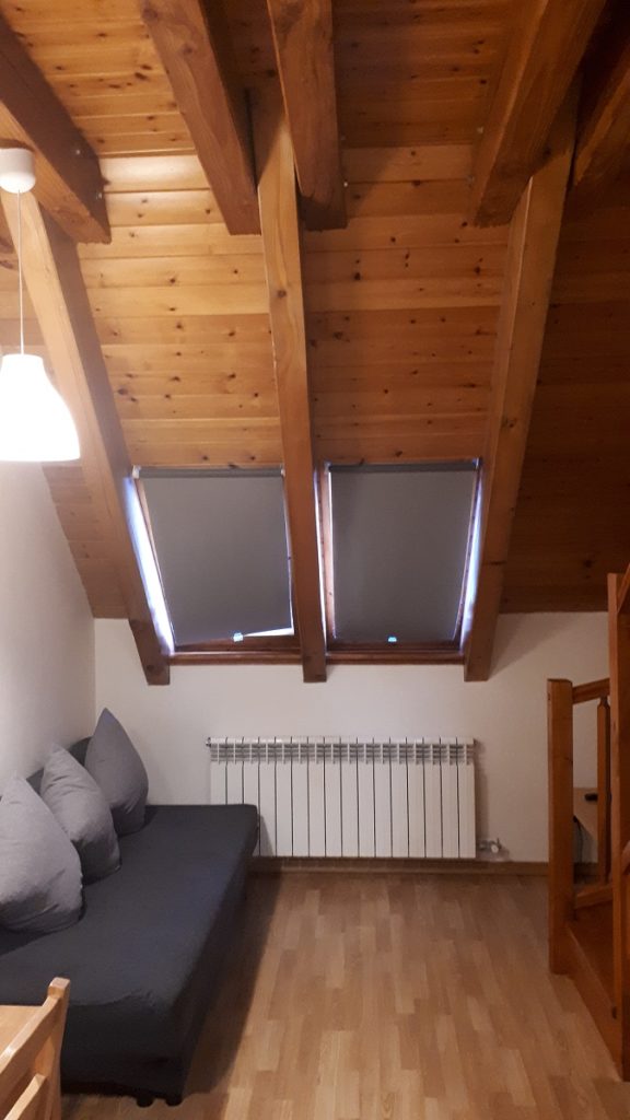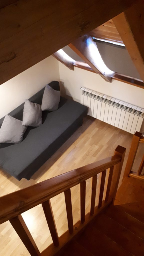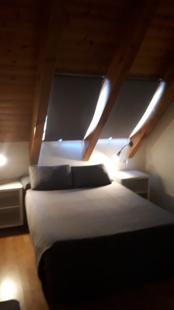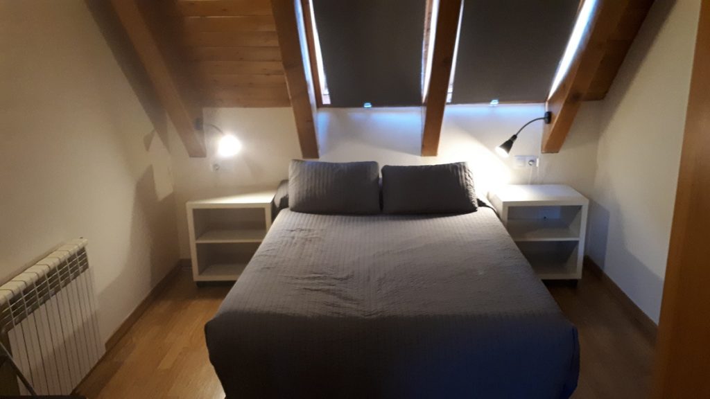 Nos hemos alojado en el Aparthotel Nou Vielha, un pequeño establecimiento al estilo típico de los Pirineos. Con suelos de madera, vigas vistas, habitaciones estilo buhardillas con vistas a las nevadas montañas y situado en plena zona comercial de Vielha.
