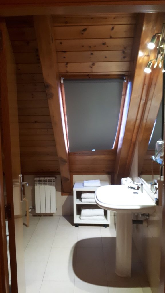 El cuarto de baño es amplio y dispone de plato de ducha. Aquí tengo que decir que el plato es ducha es minúsculo y es un poco complicado ducharte a gusto. No sé si el resto de habitaciones tendrá el mismo tipo de plato de ducha, pero esta habitación que nos han asignado es pequeño.